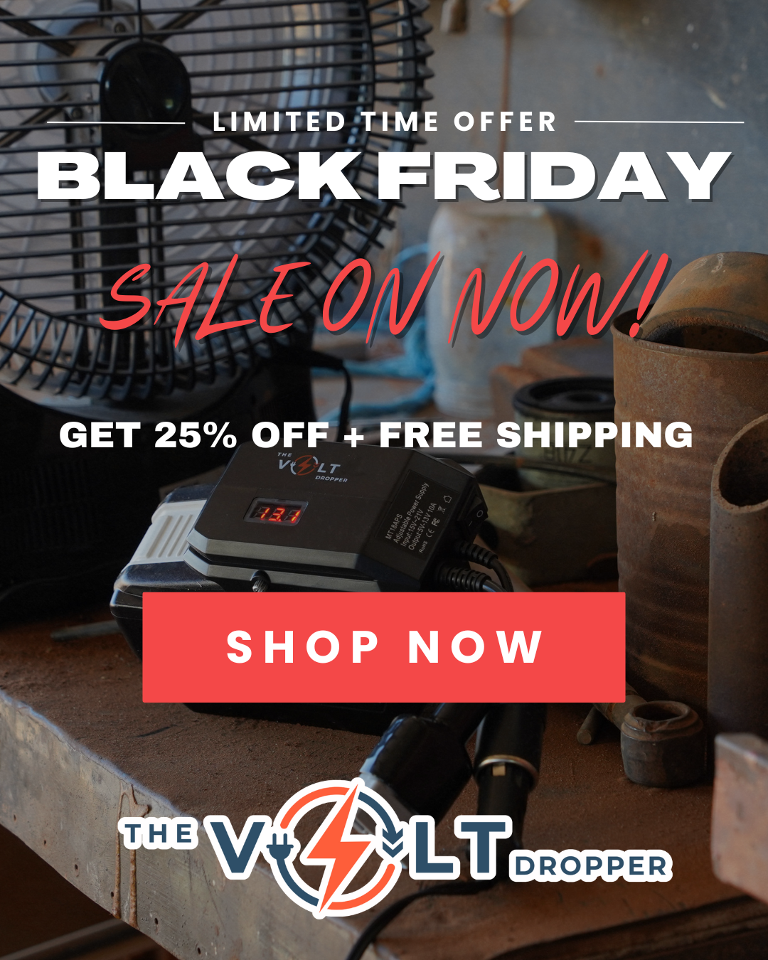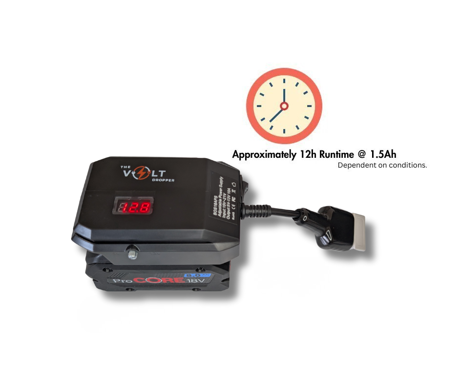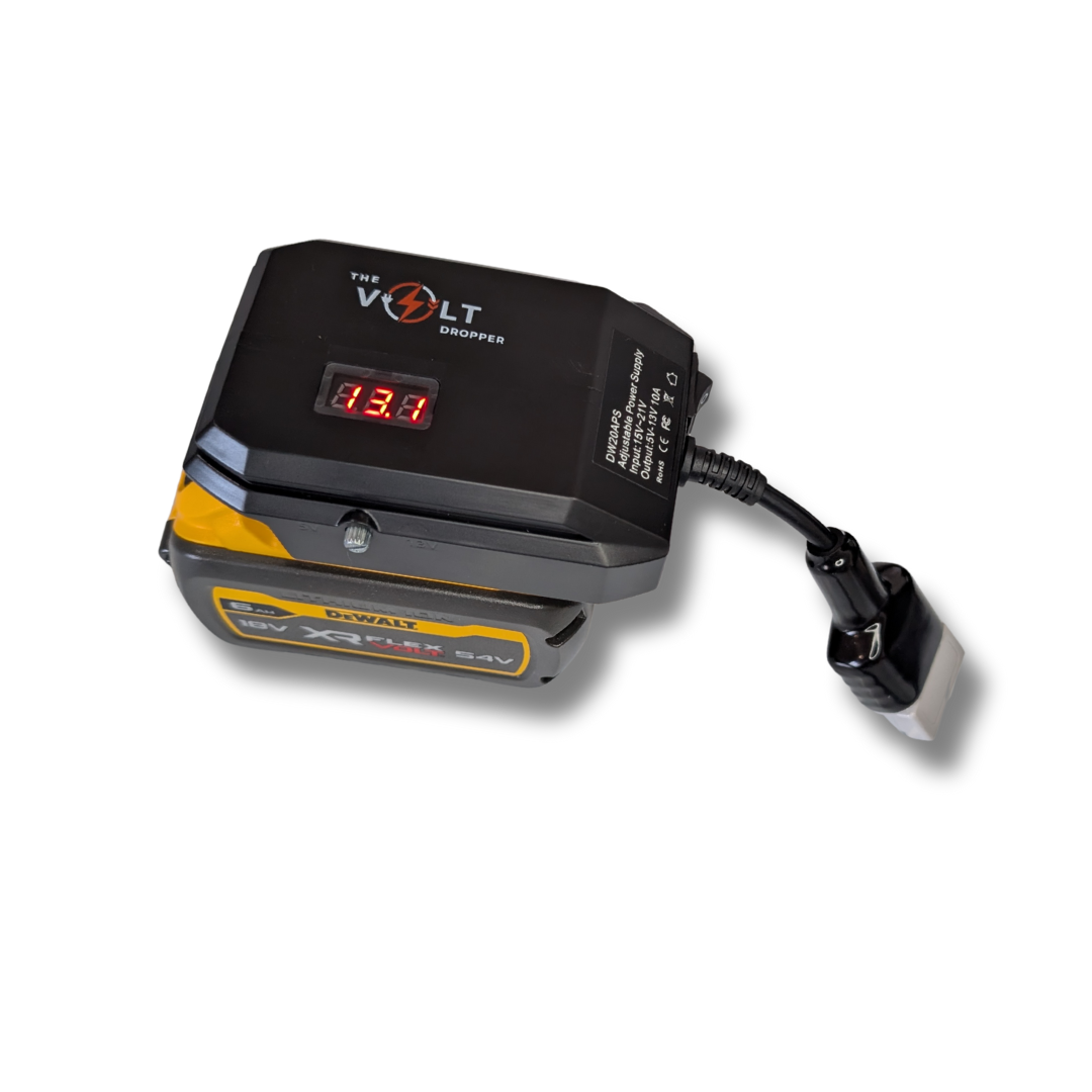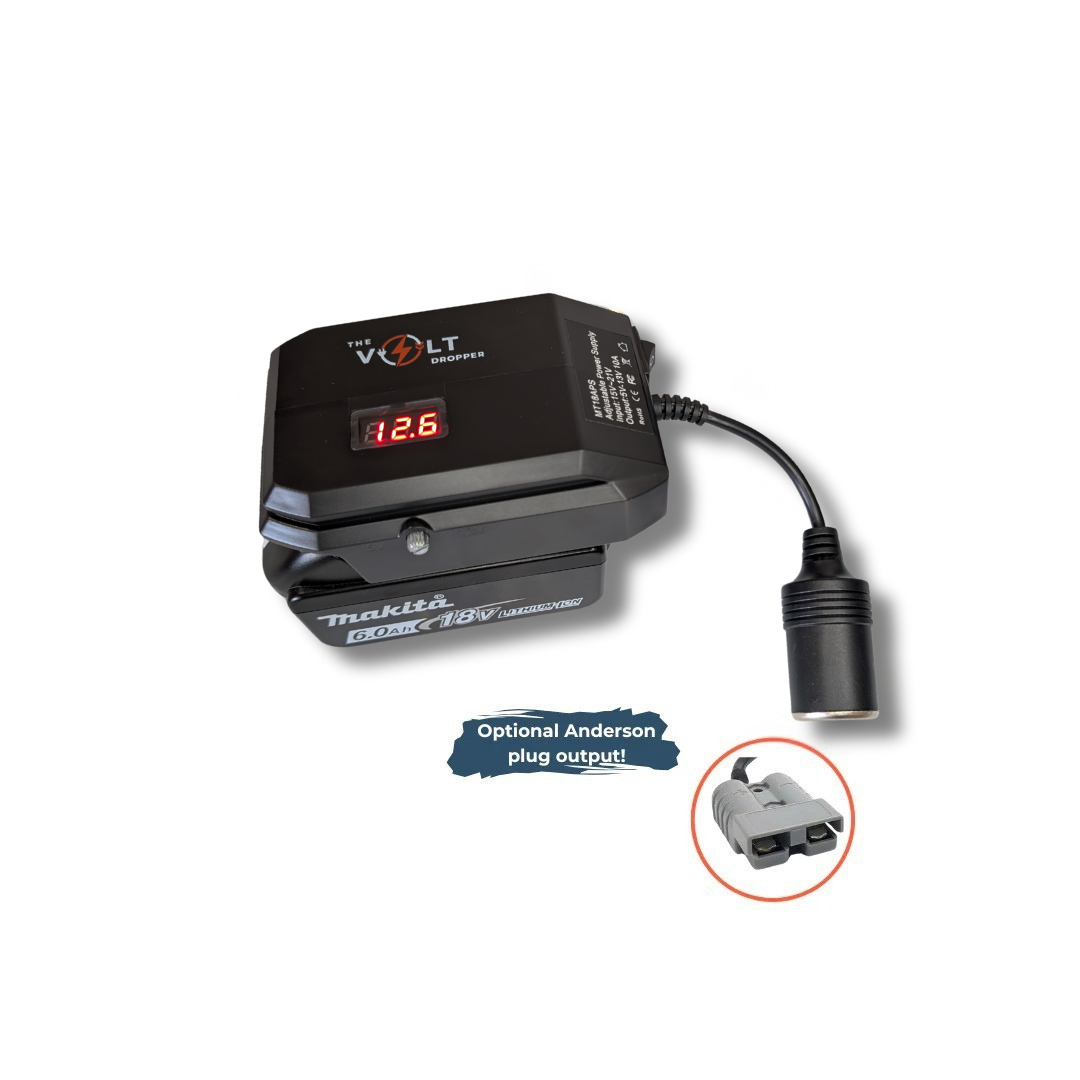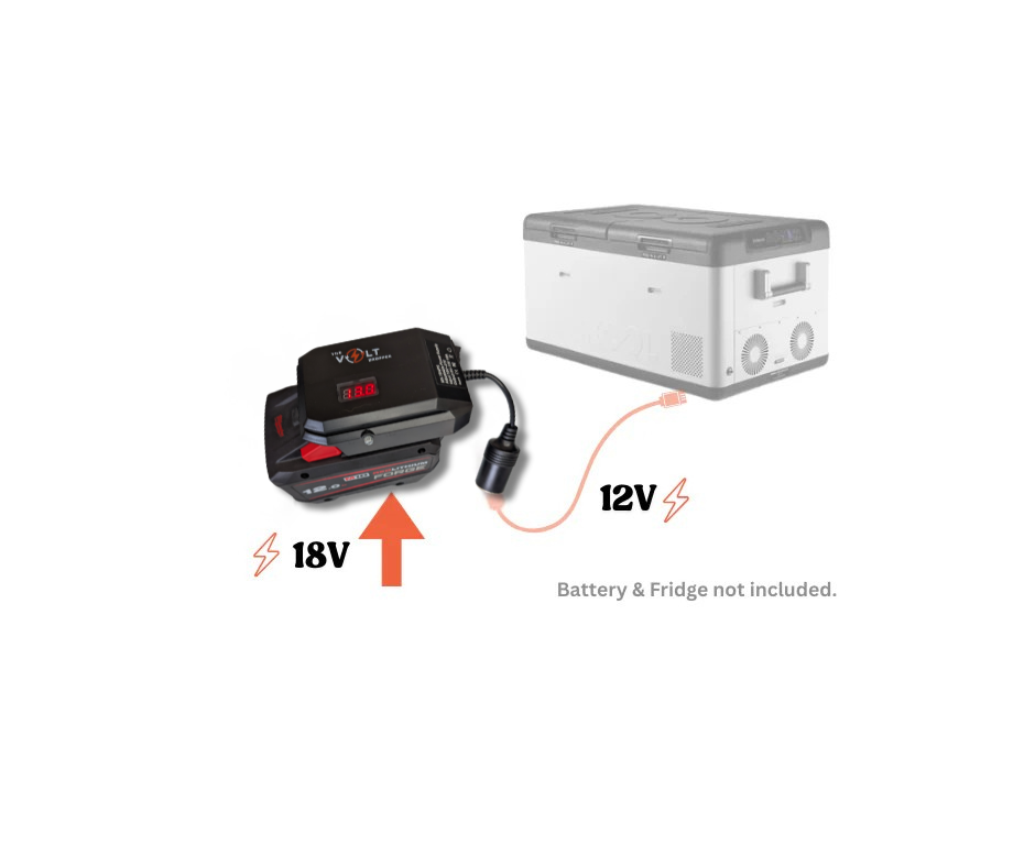 The Volt Dropper converts 18-20V Batteries to 12V! Allowing you to power your 12V camping gear, lights, Fridges & Freezers etc!